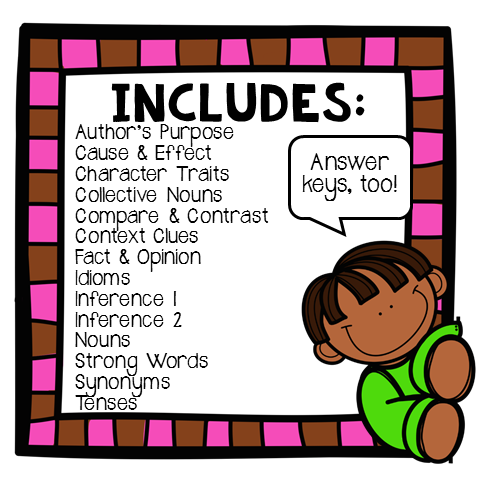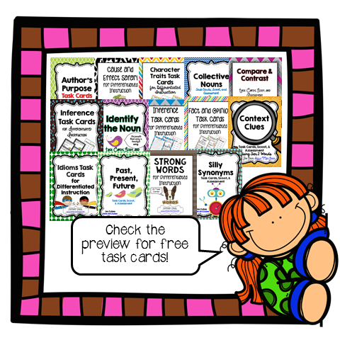 Task Cards to review Author's Purpose, Context Clues, Cause and Effect, Idioms, Character Traits, Compare and Contrast, and more!! Looking for a fun way to differentiate instruction for remediation, review, or enrichment for your learners? This bundle includes over 480+ task cards, as well as quick assessments and scoot games from 19 of my popular ELA Task Card Sets for grades 2-4 from Hello Mrs Sykes.