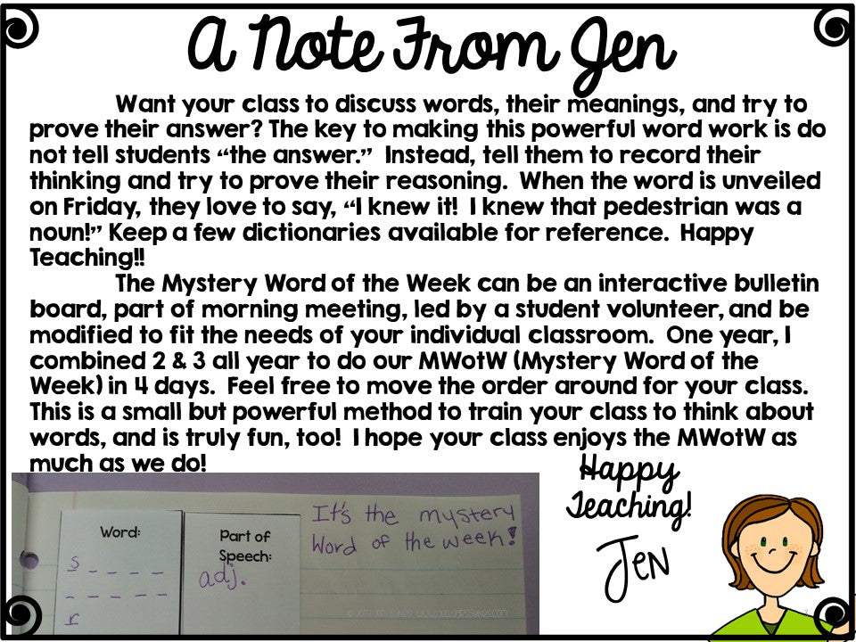 Mystery Word of the Week - 1 free week!! Perfect at the beginning of the school year or anytime as a quick and easy way to improve vocabulary. This is one week from the Mystery Word of the Week to Boost Vocabulary, Set 1 - Year 2.