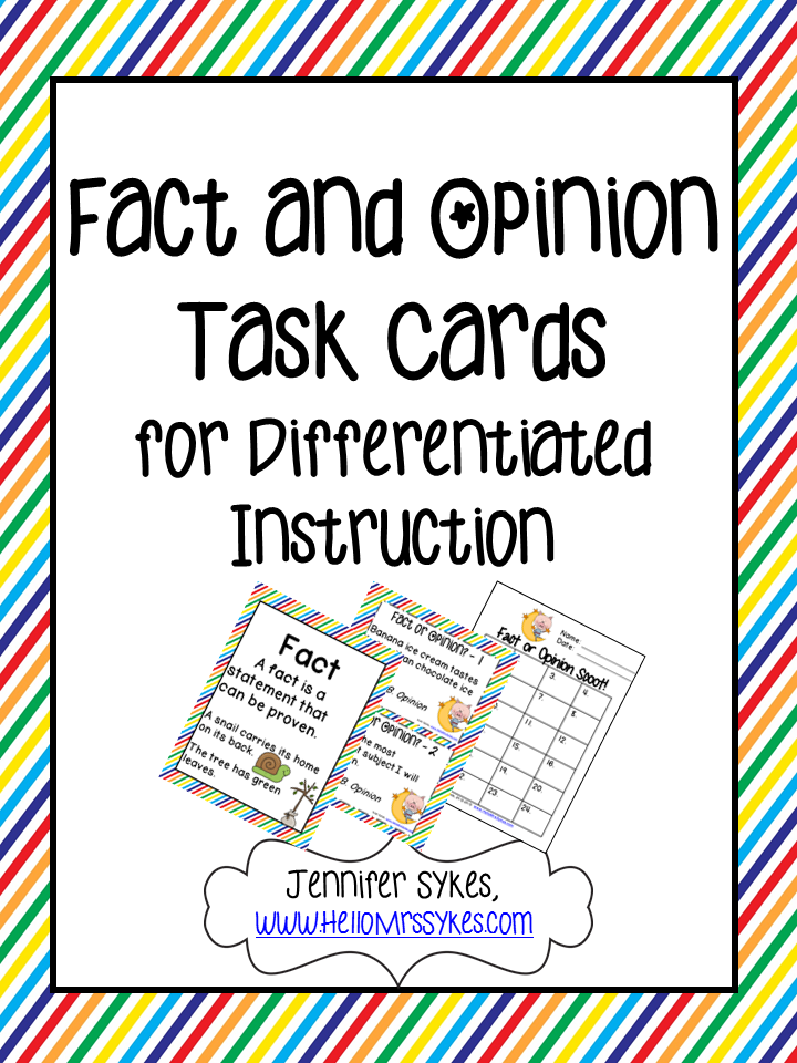 This Fact and Opinion set includes 2 posters and 24 fact & opinion task cards, which are an effective resource to differentiate instruction for a variety of learning styles. That's 2 resources for the price of 1! The posters can be anchor charts and visuals for your lessons differentiating between fact and opinion. These task cards are great to have on hand as an extension activity for early finishers, a remediation activity led by a volunteer or paraprofessional, as a review prior to standardized testing, and to play Scoot. Project the task cards for whole group and/or small group mini-lessons and practice. You can also use the included space-themed "SCOOT" board to assess knowledge of cause and effect quickly.